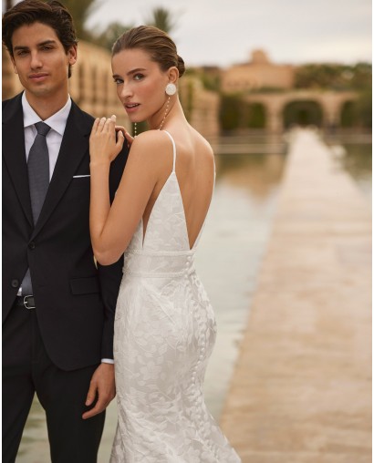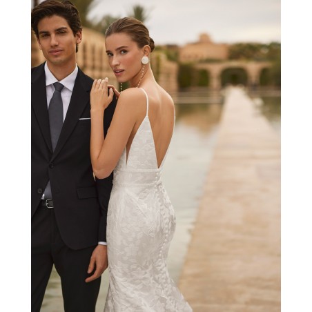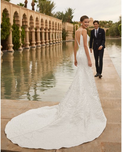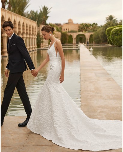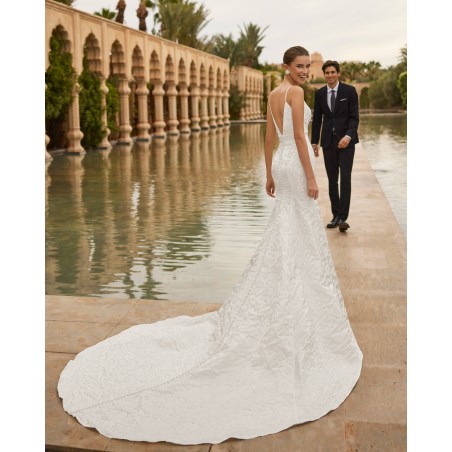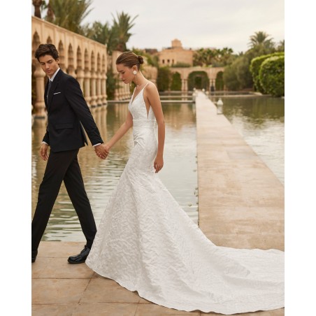 Robe de mariée sirène en brocart – Décolleté plongeant et dos élégant | ROSA CLARÀ