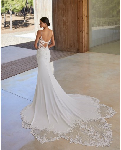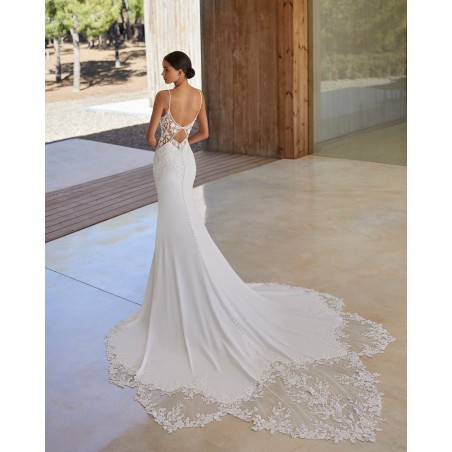 Ce modèle signé Rosa Clará séduira les mariées en quête d’un style à la fois moderne, sensuel et intemporel, parfait pour sublimer chaque instant de la cérémonie.