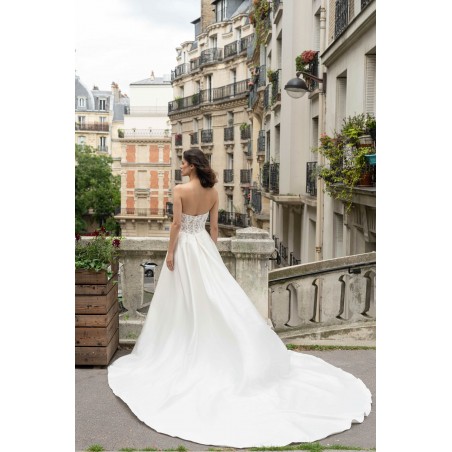 • Coupe : évasée avec jupe fendue et traîne