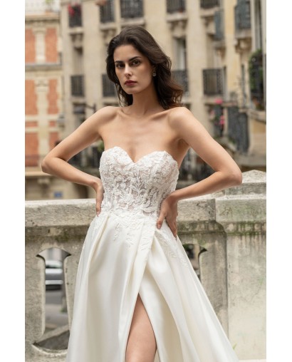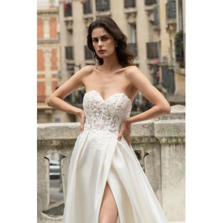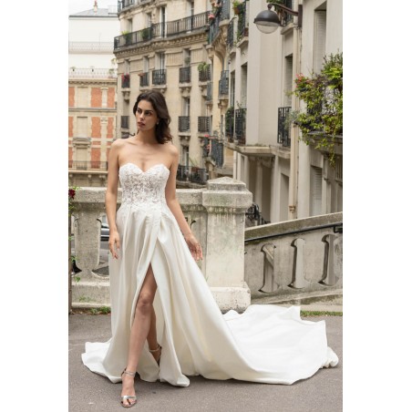 Robe de mariée bustier fendue en satin et dentelle – Modernité sensuelle