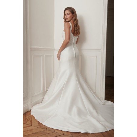 Une robe parfaite pour une mariée moderne, élégante et sûre de son style, idéale pour un mariage civil, urbain ou une cérémonie chic et épurée.