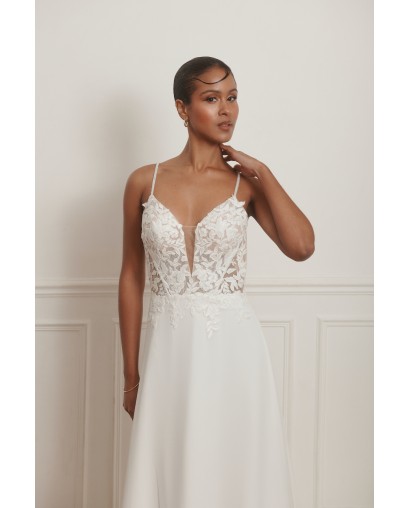 Une robe idéale pour une mariée moderne, confiante et élégante, qui souhaite allier sensualité, raffinement et intemporalité.