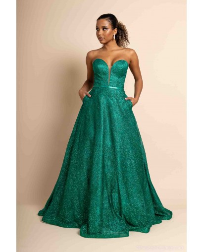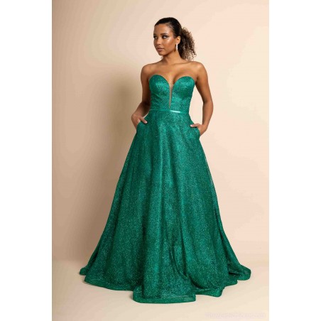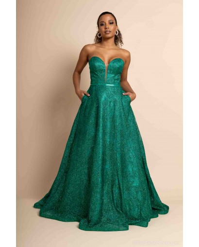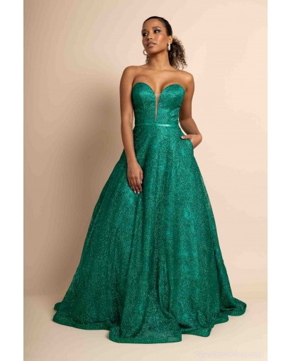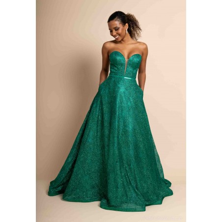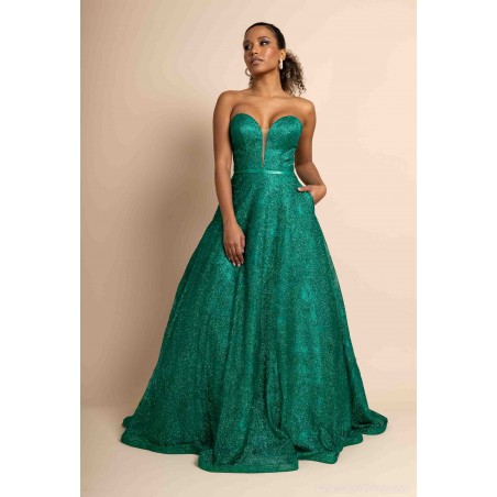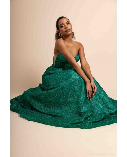 Sa coupe princesse volumineuse offre une allure majestueuse et raffinée, parfaite pour une soirée chic, un gala ou un événement prestigieux. Le bustier structuré, sans bretelles, assure un maintien optimal tout en mettant en valeur les épaules et le décolleté avec élégance.