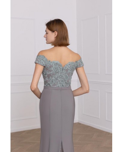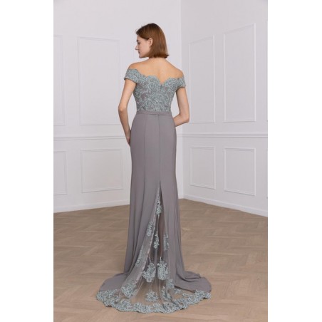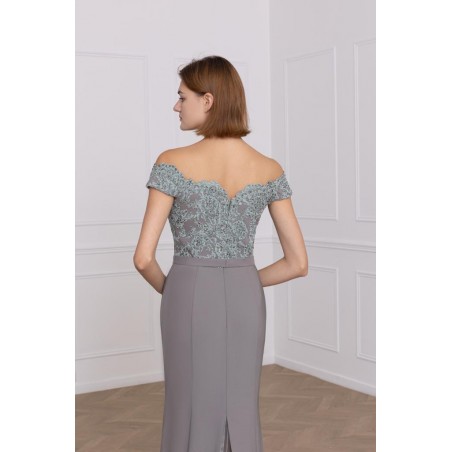 Robe de Cocktail Coupe Fourreau avec Haut en Dentelle et Jupe en Mikado