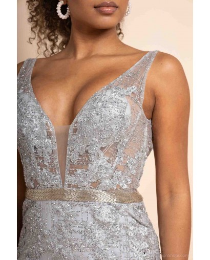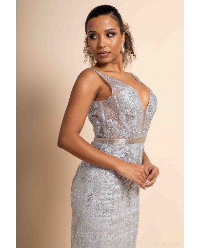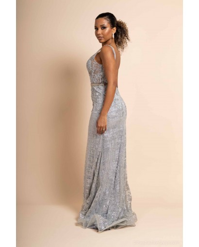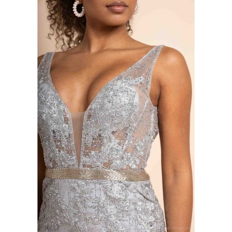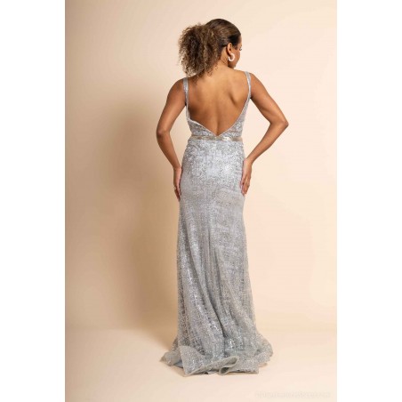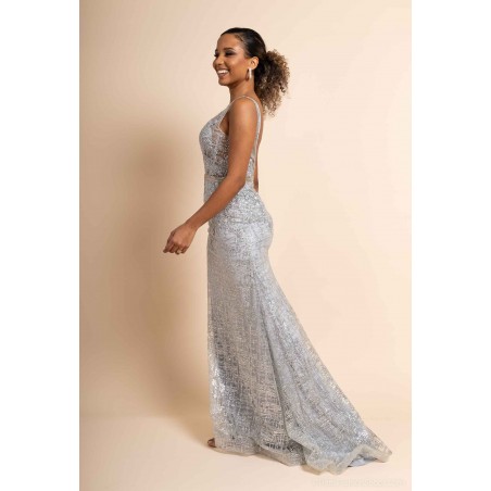 Affirmez votre style avec cette somptueuse robe de cocktail grise coupe sirène, conçue pour sublimer votre silhouette avec sophistication. Sa coupe ajustée épouse les courbes avant de s’évaser délicatement en bas, créant un effet à la fois glamour et raffiné.